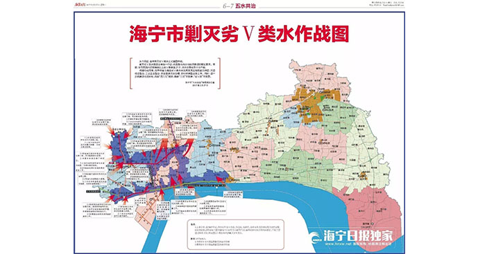 行动 2月24日,我市出台《劣V类水剿灭行动方案》,计划通过2017年整体剿灭全域劣V类水。2月27日起,海宁市剿灭劣Ⅴ类水正式挂图作战。 总体目标:至2017年年底,海宁市劣V类水全境、全流域、全消灭,全市水环境质量实现历史性突破。 时间安排:2月中旬全面开展海宁市劣V类水剿灭行动,10月底前初步达到消劣目标,年底全面通过验收,镇村级河道及小微水体同步剿灭劣V类水。